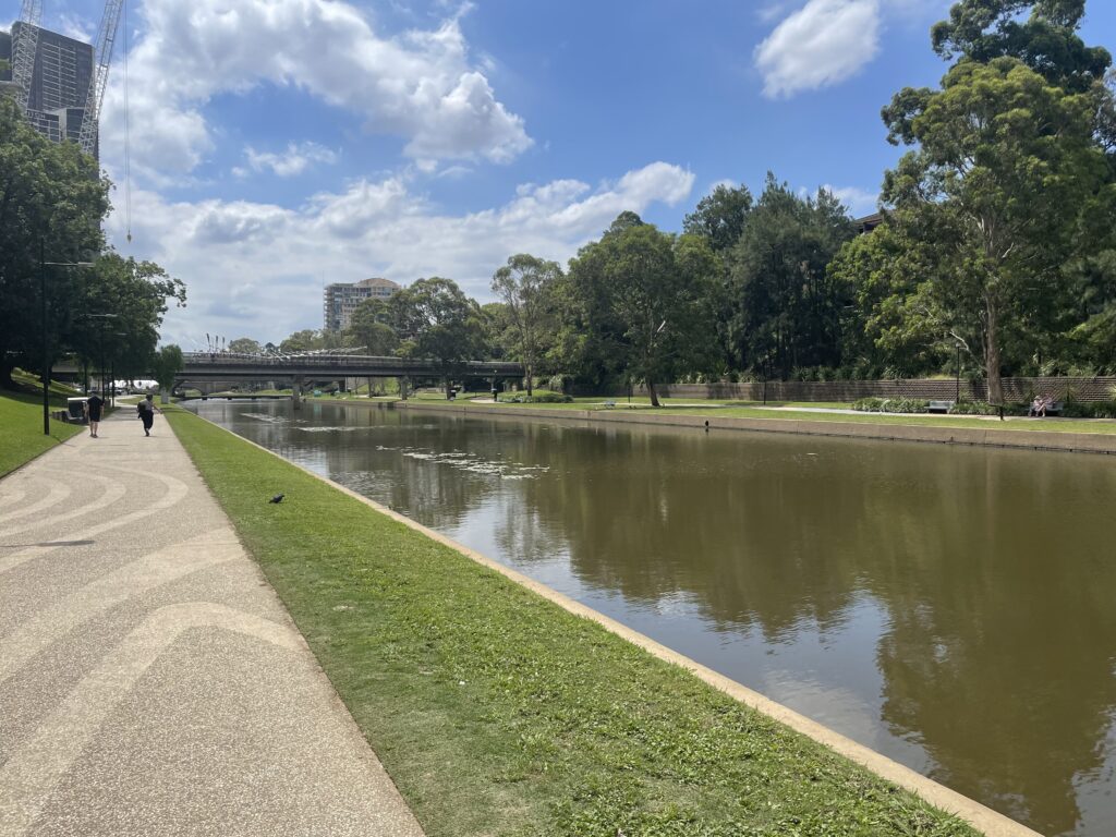 Parramatta var til gengæld noget af en speciel oplevelse. Vi gik langs flodstien ind til bymidten, hvor vi kom op til et ældre hovedstrøg, hvor der stort set ikke var et øje. Alle butikkerne var lavet om til restauranter eller kiosker, men der var ingen rigtig byliv. Til gengæld var de i fuld gang med at anlægge en ny letbane med alt hvad det indebar. Stor var kontrasten, da vi fandt frem til stationen og det dertil knyttede butikscenter. Det var anlagt med forbindelsesveje under terræn, der var fyldte med mennesker. Da vi kom op i butikscenteret myldrede der også en masse mennesker rundt. Så det er lykkedes dem at tømme den naturlige by, og rykke den totalt inden for i et ligegyldigt forbrugspalads. Man forstår ikke helt hvorfor.