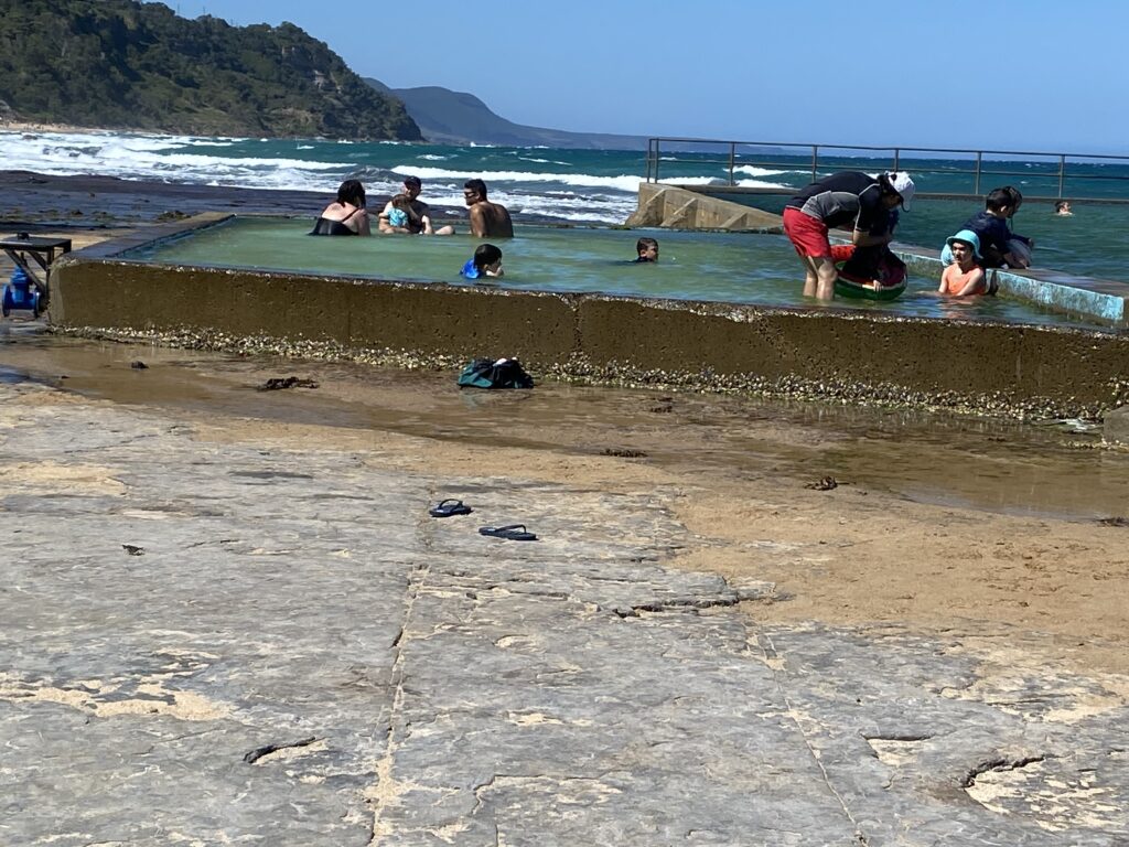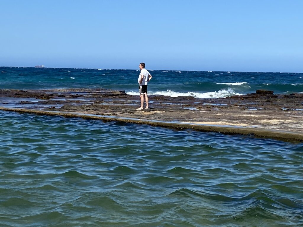 Som I kan se, så er det et sted med masser af strande og bademuligheder. Det benyttede vi os også af i dag. Vi tog en tur i den lokale pool, som er med havvand og forsynes direkte fra havet. Her kan man bade sikkert uden at blive smadret af brændingen eller tygget på af en haj 😄