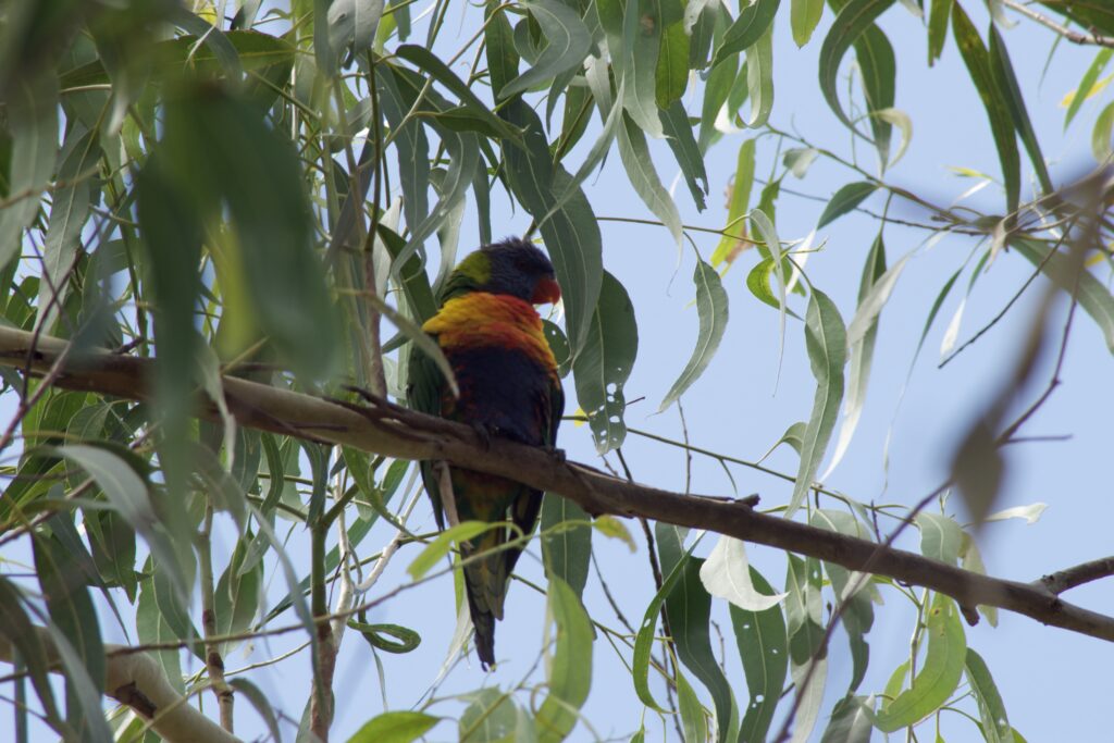 Så sidder vi her på terrassen igen, og skal samle dagens oplevelser, mens en kakadu familie med 2 sultne unge fugle larmer noget i et af træerne. Om lidt går solen ned, og så overtager cikaderne lydbilledet, fortsat understøttet af havets bølgebrus. Det er noget andet end storbyen – men helt stille er det ikke 😄