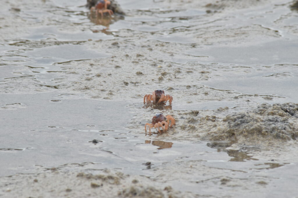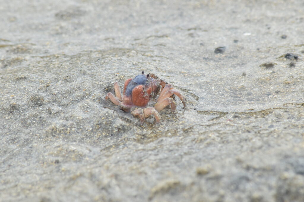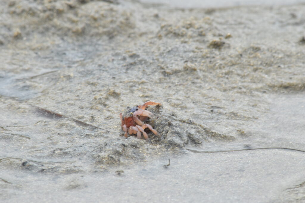 Herefter kørte vi hen til en anden strand, hvor vi gik på jagt efter små eremitkrebs. Vi måtte gå et pænt stykke i indsøens delta før vi fandt dem. Og lige så snart de kunne mærke, at vi nærmede os, så gravede de sig ned i sandet. Men efter lidt tålmodig venten, fik vi dog lov til at tage nogle billeder af dem. Det var meget interessant, og noget vi ikke ville have set, uden en lokal og vidende guide. Andy kender mange af den slags steder her i omegnen.