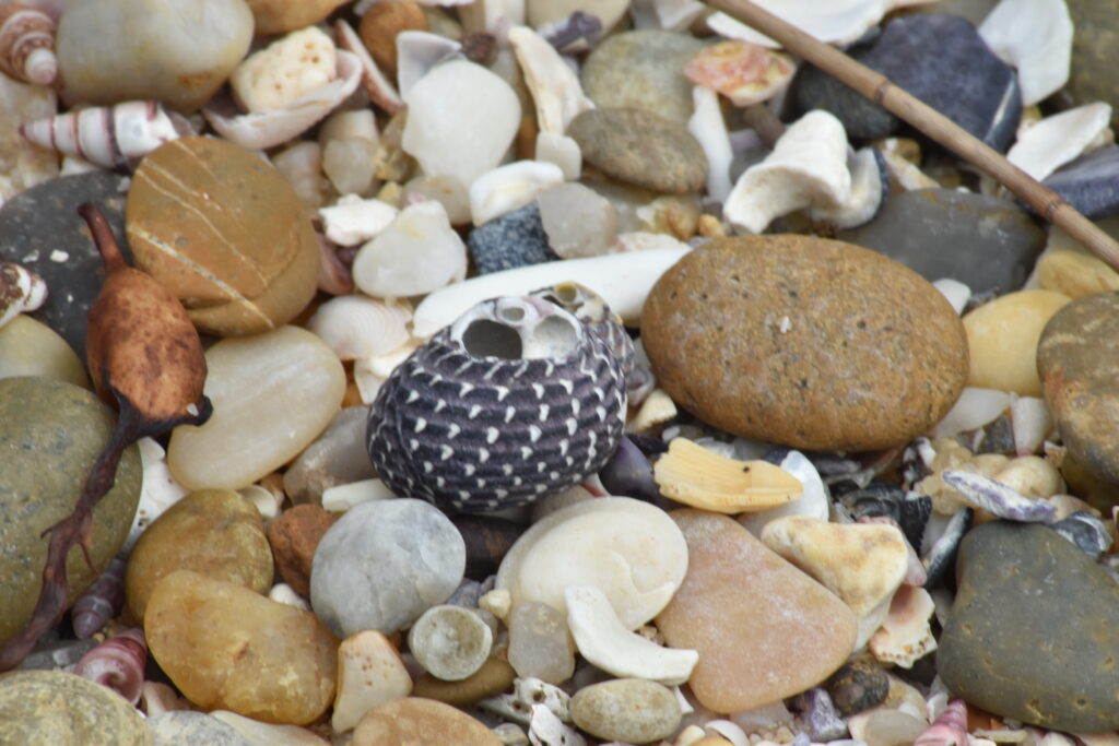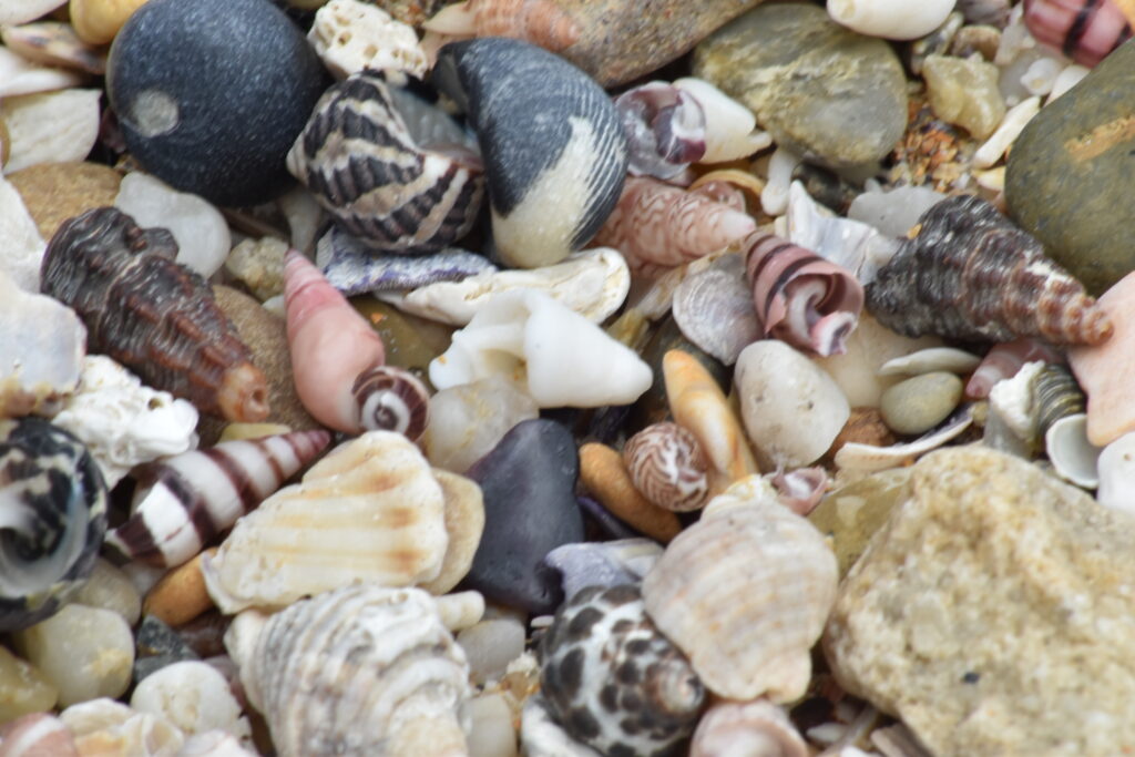 Derfra kørte vi så til en lille strand, hvor vi kunne gå en tur ud til en stenet kant. Her fandt vi krabber, der legede og markerede terræn på stenene. Det var også interessant at se, hvor forskellige deres strandskaller er fra vores. Her er de farverige og i mange forskellige former.