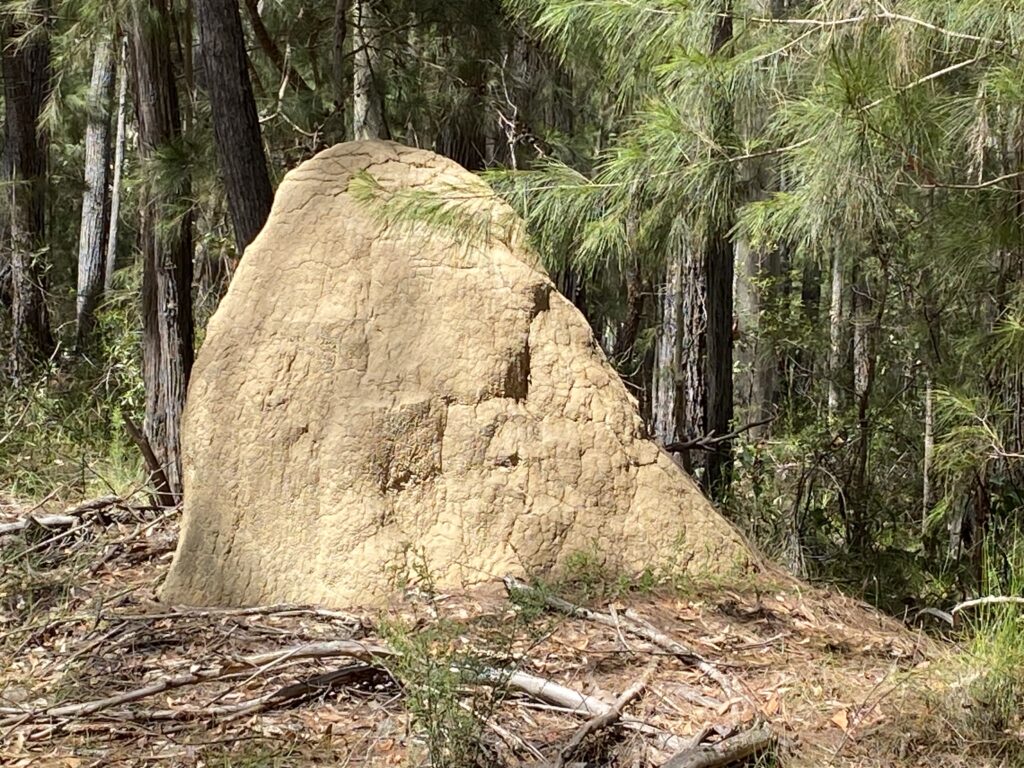 Efterfølgende måtte vi også stoppe for at tage et billede af dette flotte termitbo. De er allevegne inde i skovområderne. Termitterne har formået at skabe et bosted, hvor de har etableret naturlig køling, så boet kan overleve i solen. Det er ikke som en danske myretue – man ser ikke termitterne.
