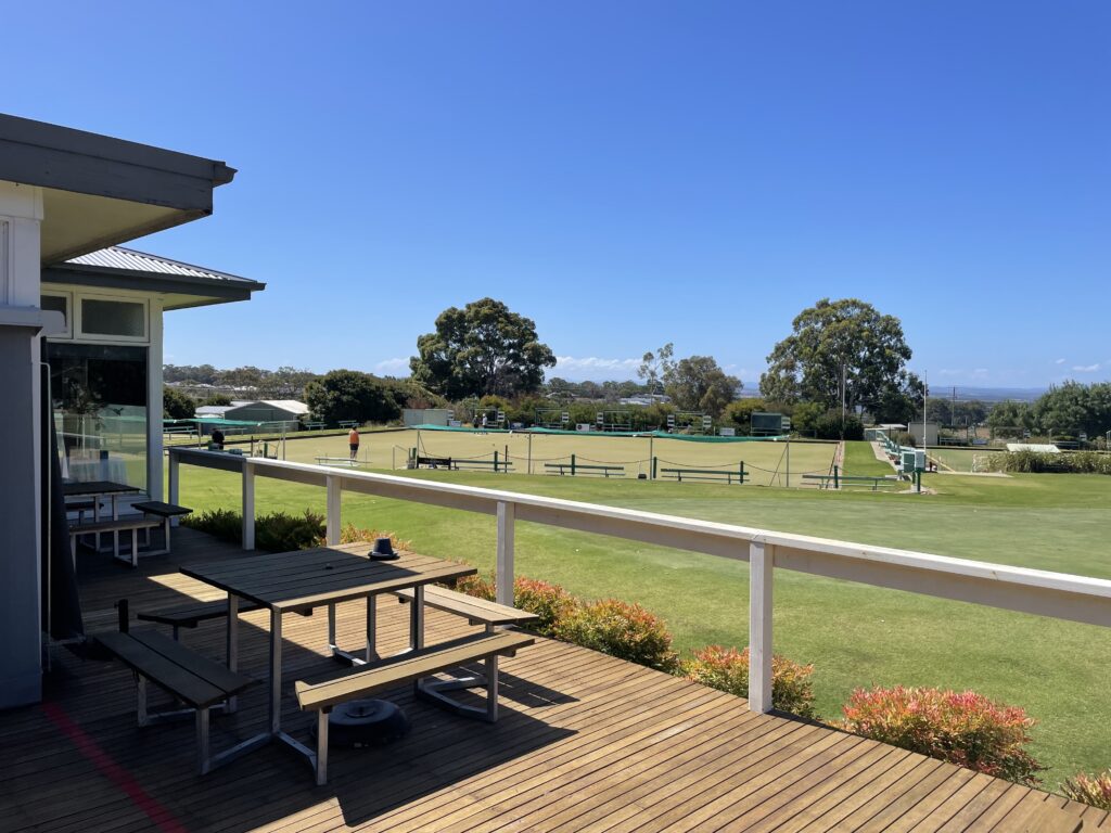 Ud over de 18 huller til golf råder klubben også over en bowlinggreen til lawn-bowling. Det var der gang i, da vi kom ind og fik vores velfortjente kolde øl. Her kan man i øvrigt købe øl med lav alkoholprocent, så man med sindsro kan køre hjem. Fint initiativ – de smager bestemt mindst lige så godt i varmen.
