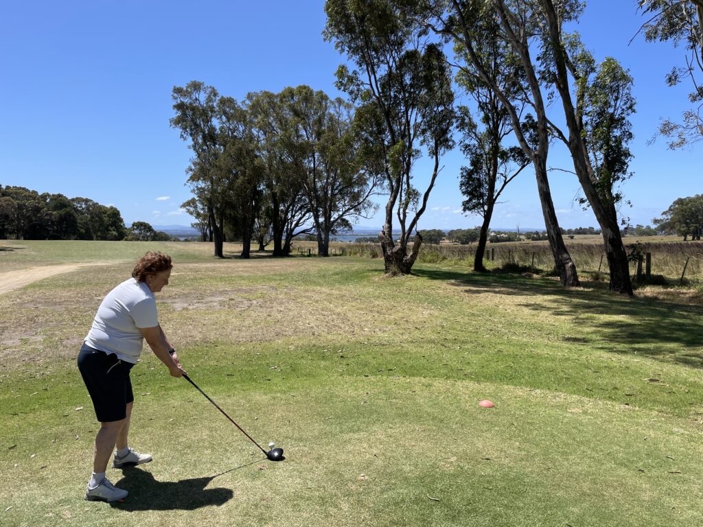 Dagen startede lidt overskyet, men det blev hurtigt klart, at vi ville få den lovede sommerdag. Så vi fik gjort os klar og drog afsted til Bairnsdale, hvor den lokale golfbane skulle være en af de bedste i området. Vi kunne ikke få en buggy, men da banen var relativ flad var vi enige om at gå den – så kunne vi også få lidt tiltrængt motion.