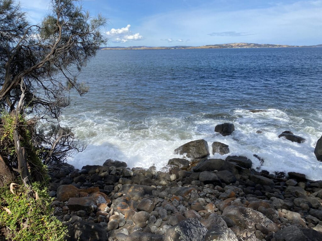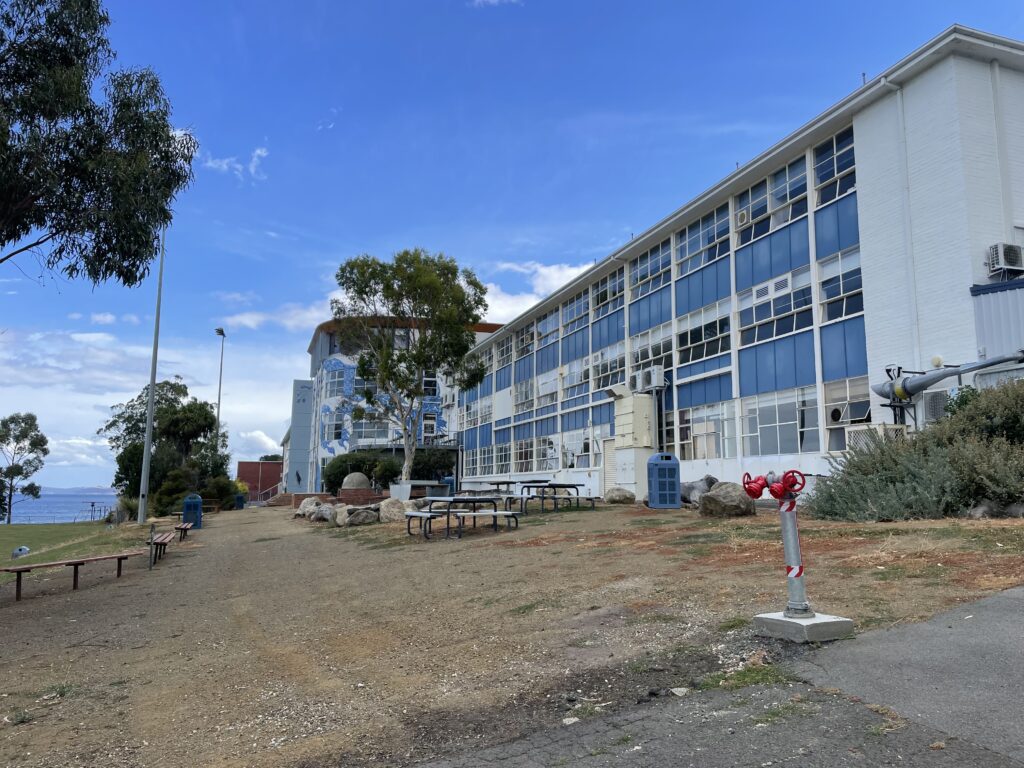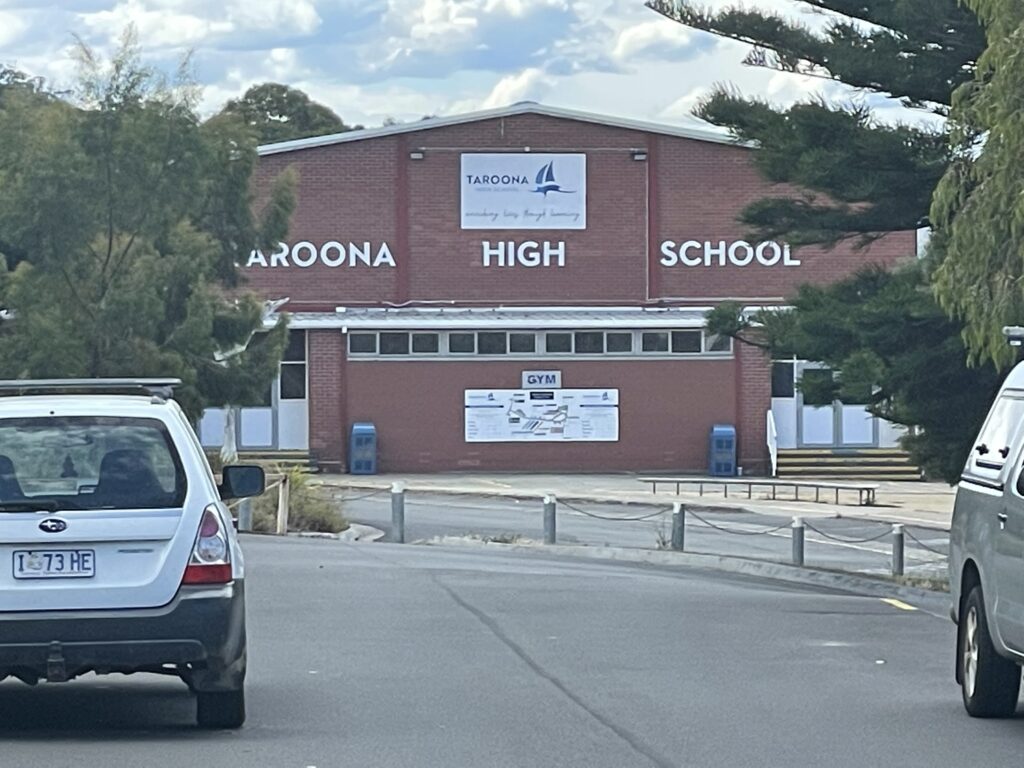 Efter frokost har vi gået en tur langs kysten sammen med Erik. Erik har en del oplevelser tilfælles med vores Kronprissesse. De har faktisk gået i den sammen børnehave, pre-school, primary school og high school her i Taroona. High schoolen ligger lige rundt om hjørnet, så den gik vi forbi.