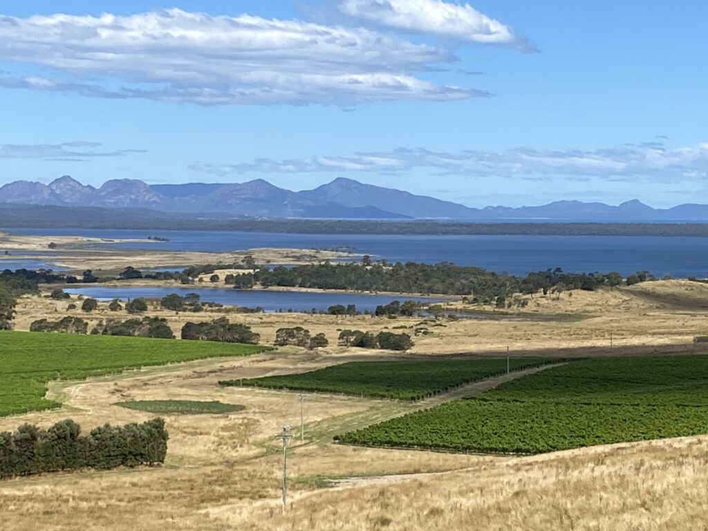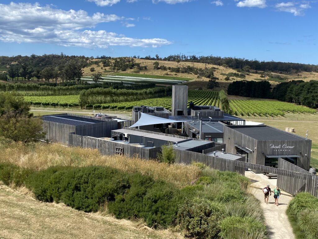 Tilbage på hovedvejen var det næste der lokkede, en af de lokale vingårde, Devil’s Corner, der havde et udsigtspunkt. Det viste sig at være et tårn de havde bygget, så man kunne komme op og kigge ud over bugten. Her var naturen også smuk, og faktisk blev den endnu kønnere af de mange lange rækker af vinstokke, der stod frodigt grønne i området. Vingården var indrettet med smagninger, butik og et par spisesteder. Alt det, der gør at en moderne vingård for solgt en større del af produktionen til retail-priser, hvilket understøtter den samlede forretning.