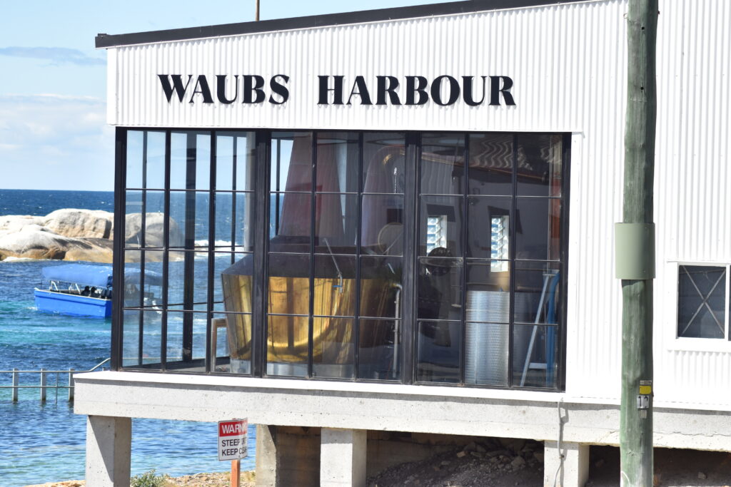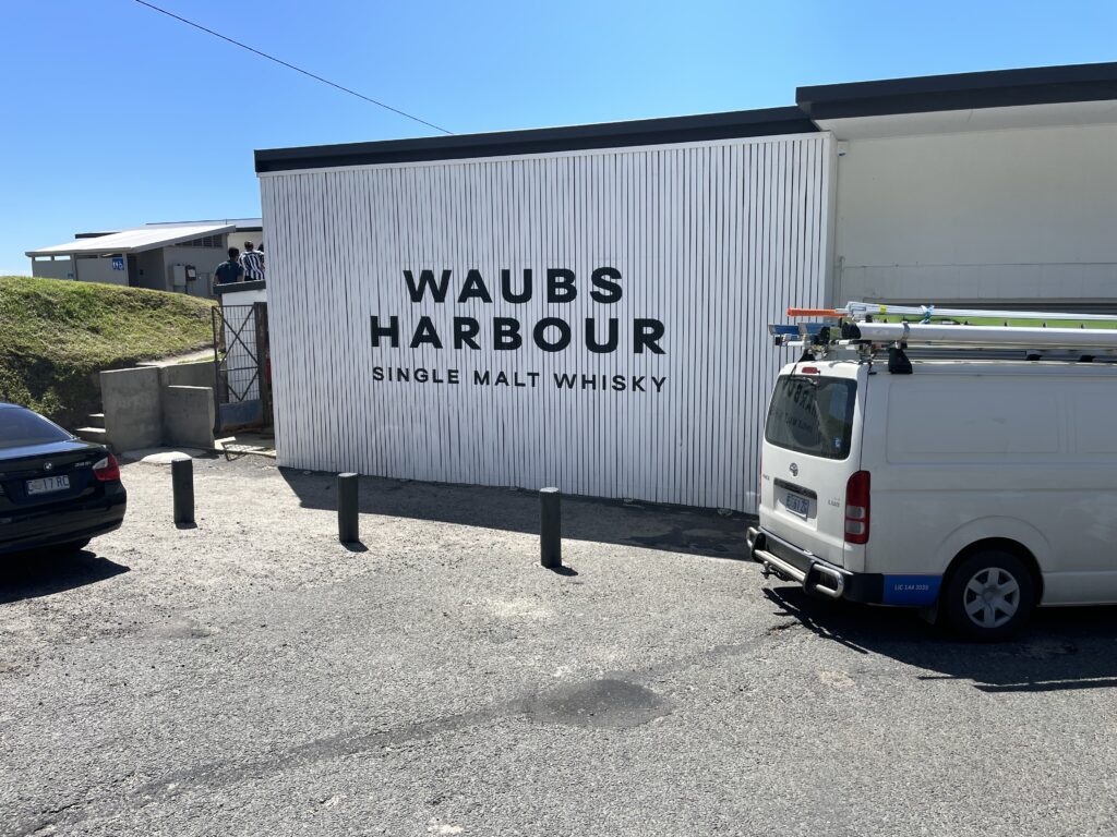 I Bicheno har de også et af Tasmaniens mange mikrodestillerier, Waubs Harbour Single Malt Whisky. Vi har ikke haft lejlighed til selv at smage (Man skulle bestille tid på forhånd – og det rimer dårligt med at køre længere ture i bilen bagefter).
