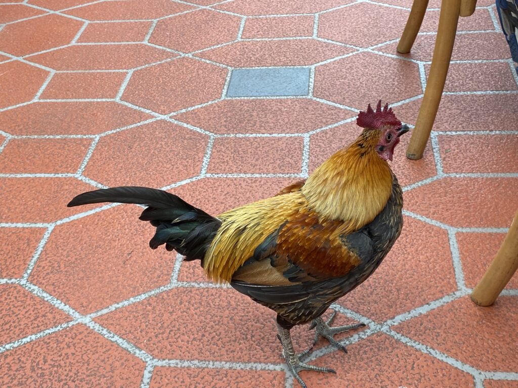 Vi stoppede i Cygnet for at få frokost. Det var et rigtig hyggeligt sted vi fandt. En café der var indrettet i noget, der sandsynligvis tidligere havde været en bank eller tilsvarende. De havde både ude- og indeservering, og så havde de noget så usædvanligt som en café-hane, der spankulerede rundt mellem bordene og sagde goddag til gæsterne.