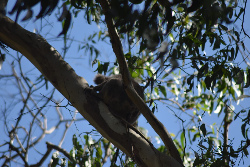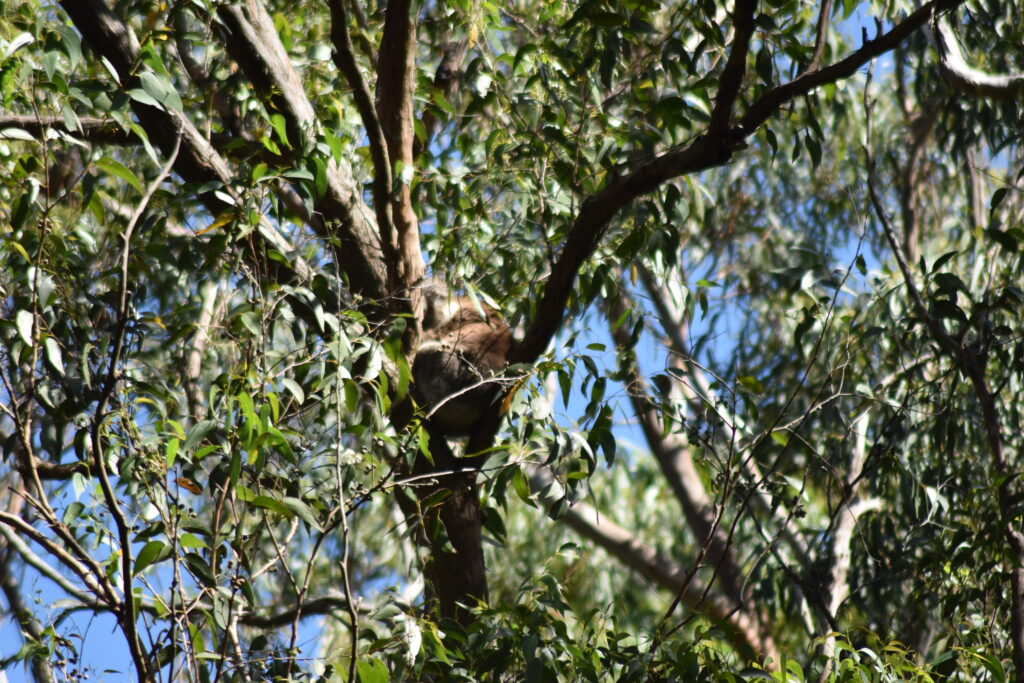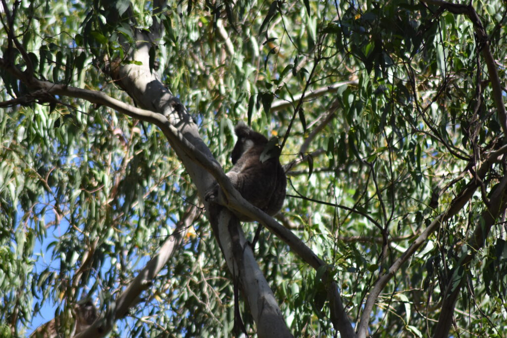 Fra regnskoven kørte vi lidt videre og så tog vi vejen ned mod Cape Otway fyrtårn. Vores vært på B&B havde fortalt os, at her ville der være chance for at se koalaer i skoven. Så vi sneg os afsted, og lukkede de travle igennem, mens vi ivrigt spejdede efter de små uldkugler oppe i træerne. Heldigvis for os, var der nogle der havde fået øje på en, og var holdt ind til siden. Og mens vi stod der, lykkedes det os at se en 3-4 koalaer oppe i træerne over os. Det var sjovt at se dem rigtig vilde – men hold da op, hvor er de svære at se, når man kommer i bil. Vi fandt dem heller ikke på vejen tilbage – og det var ikke fordi koalaerne havde flyttet sig. Det gør de nemlig meget lidt!