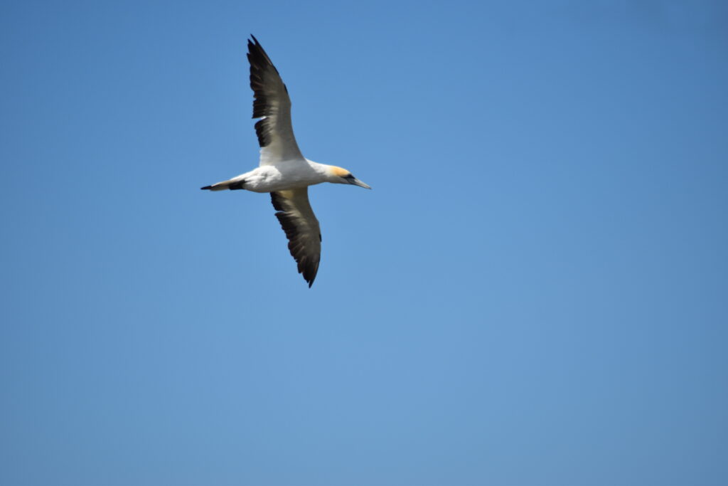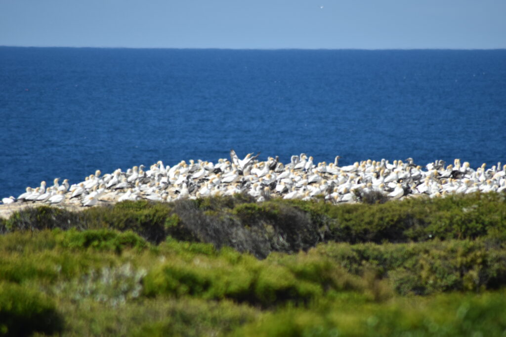 Han kunne også fortælle, da vi nu var interesseret i fugle, at der uden for Portland var en sule-koloni, som man kunne besøge. De holdt egentlig til på et par klippeøer uden for halvøen. Men da kolonien havde vokset sig for stor, havde de taget spidsen af halvøen i brug som koloni. Der tog vi naturligvis hen, for det er ikke hver dag, vi ser suler på vores breddegradder. Sulen er en stor havfugl, og en eminent flyver. De holder sammen som par livslangt og lever op til 30 år.
