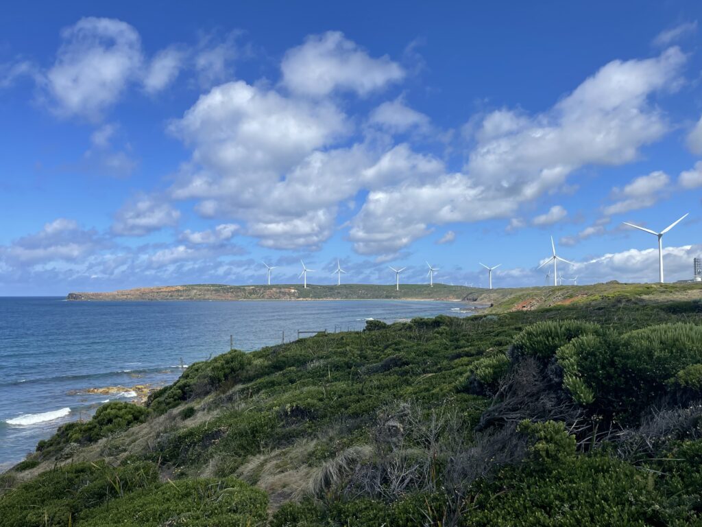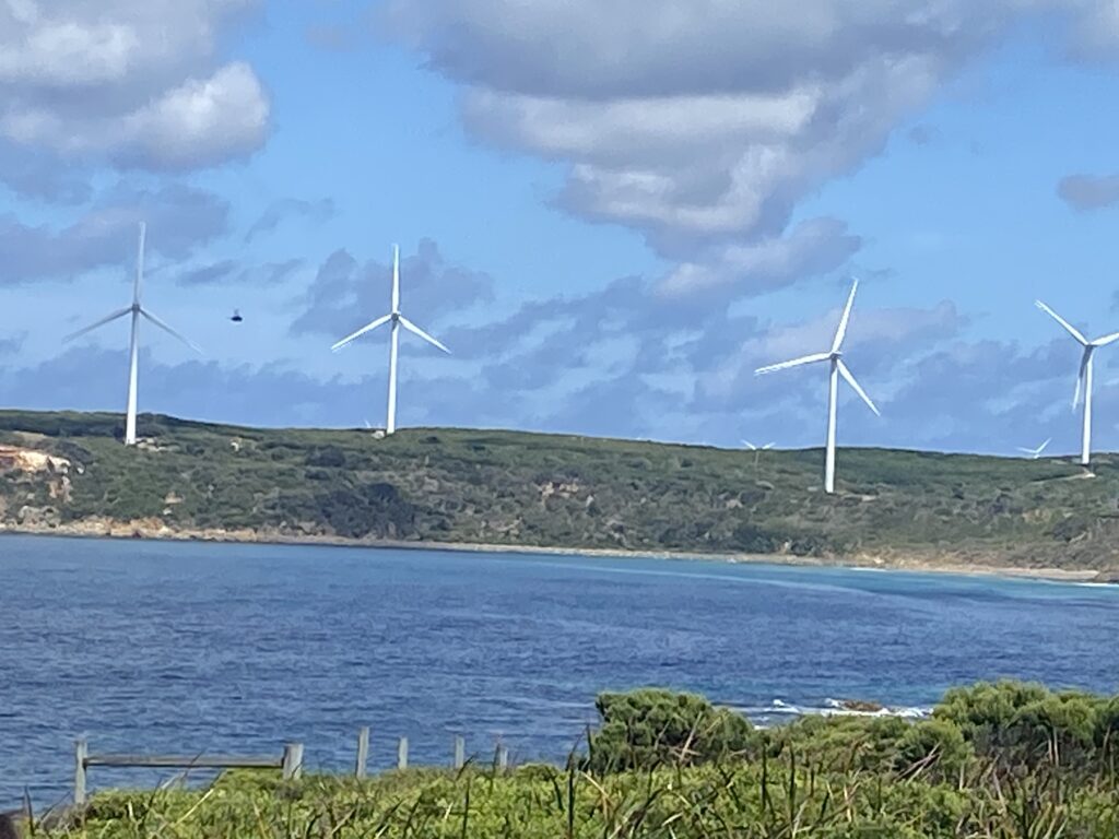 Fra sulekolonien kørte vi ud til Cape Nelson fyrtårnet, og kunne på vejen glæde os over de mange vindmøller, der er opført her omkring byen. Australien er fortsat meget bagud med vindkraft, selvom man har masser af muligheder for opstillinger, der vil kunne bidrage til en energiomstilling. Men man skal erindre, at Australien har en stor kulindustri, som jo i konsekvens deraf må lade livet. Og det er svært politisk.