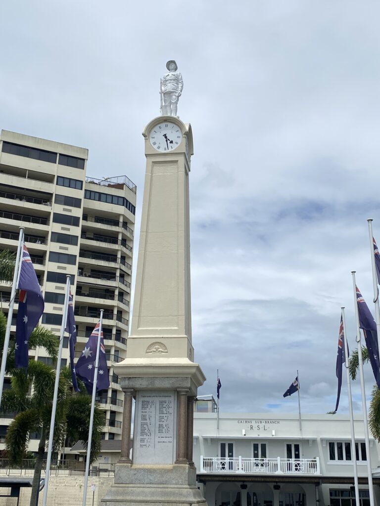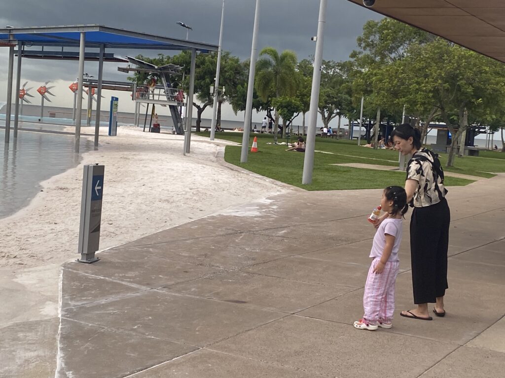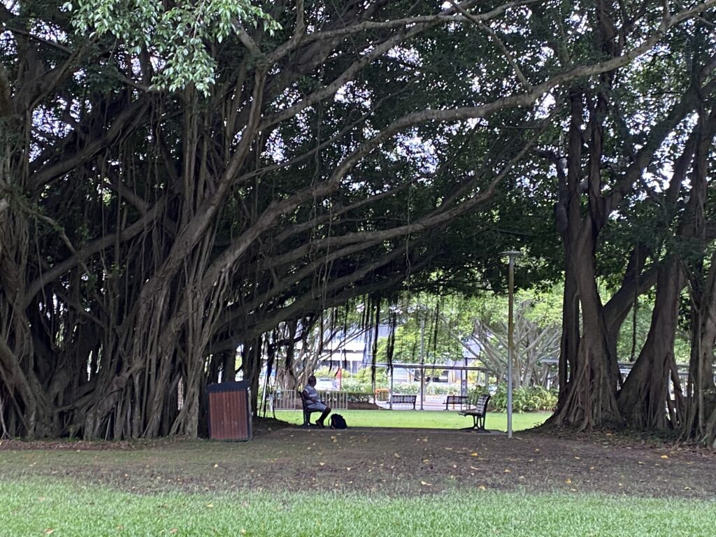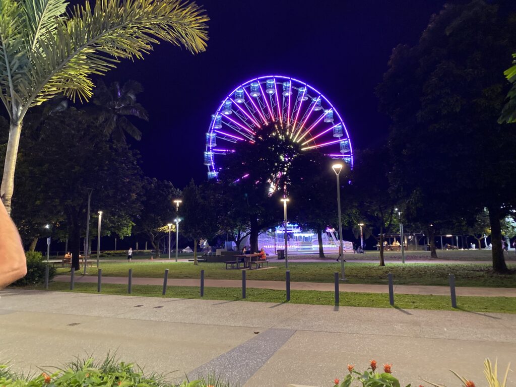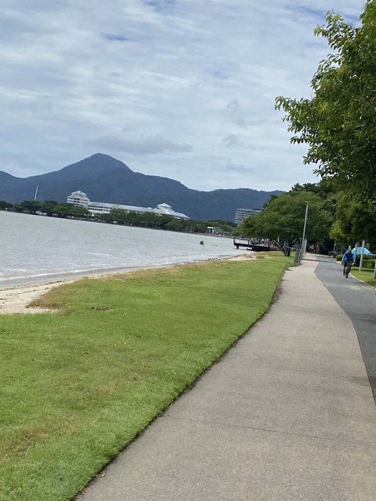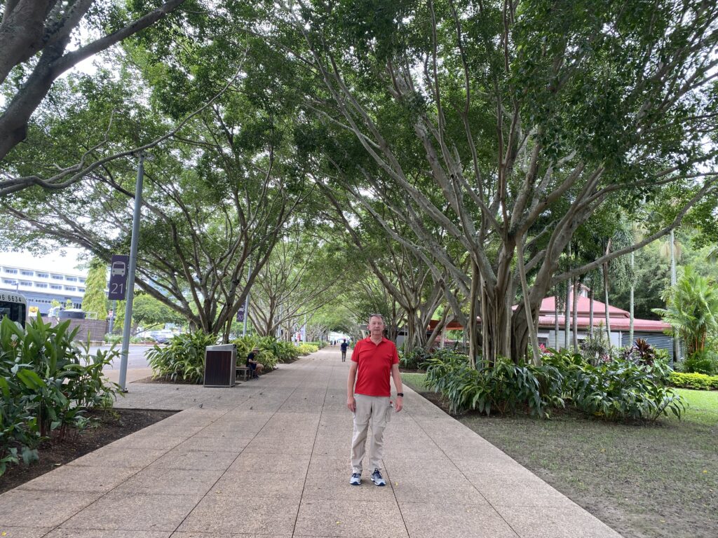 Vi var på forhånd blevet forberedt af mange på, at varmen i Cairns ville være uudholdelig på grund af fugten. Og fugtigt er her – men varmen var faktisk ikke så slem i dag. Og vi har ikke set en eneste regndråbe på trods af forudsigelserne om masser af regn. Men det har regnet i bjergene omkring byen i perioder i eftermiddags.
