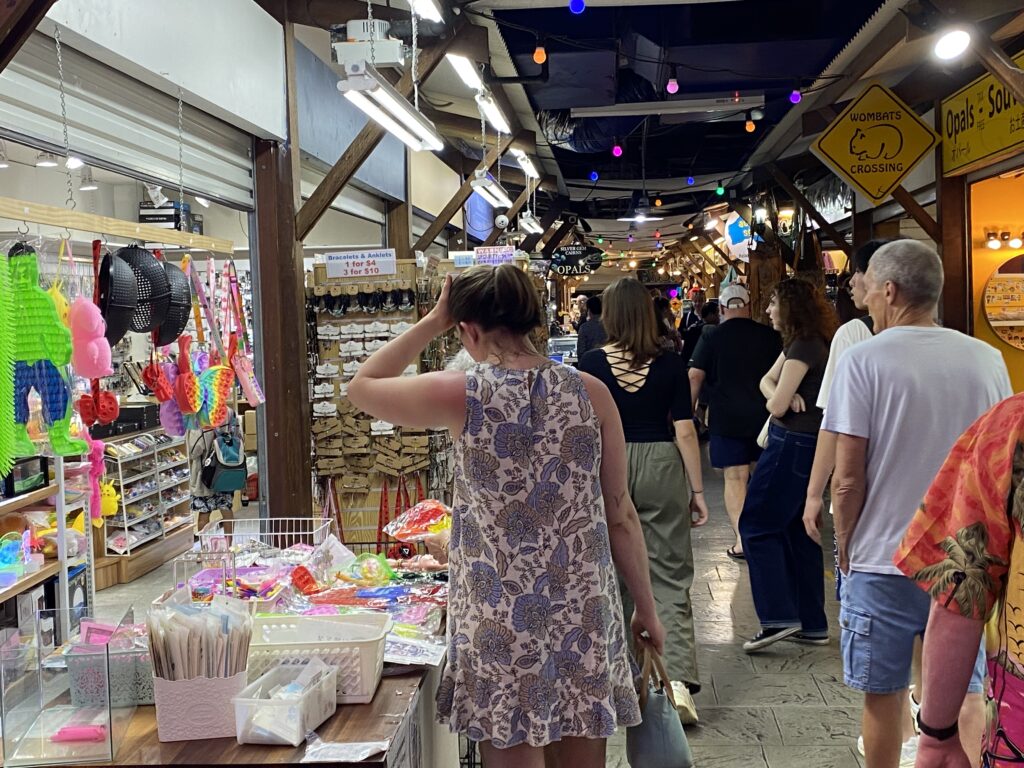 Derefter stod den på frokost og lidt indkøb. Henrik havde ingen plastsandaler med, hvilket kan være rart i poolområder m.v. Så det skulle vi finde. Birgit fik sig et par nye ørenringe, der var kønne.