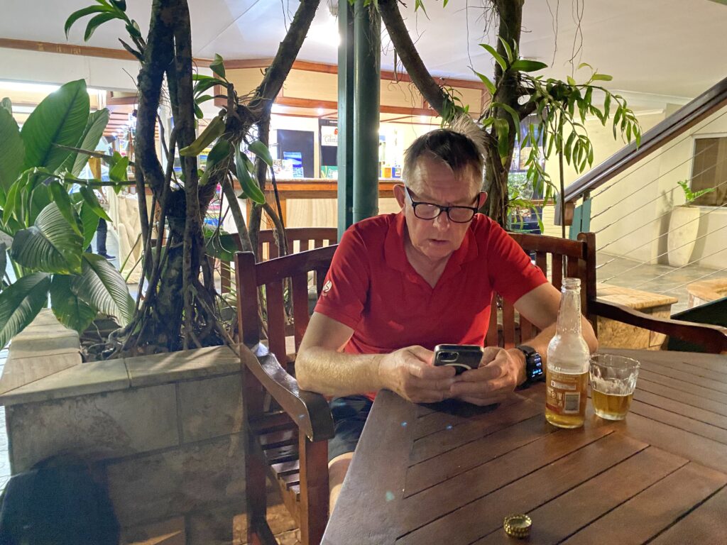 Herefter tog vi tilbage til hotellet og fik vores værelser, hvorefter Birgit fik en middagssøvn og jeg fik skrevet beretning fra i går. Også her kniber det med internettets kvalitet. Wifi’en er fin – men hvad nytter det, hvis båndbredden ud af huset er begrænset, og vi er mange på. Så lige nu bruger jeg i stedet min egen 4G-forbindelse, for den er bedre. Og så ryger idéen med wifi jo lidt!! Det kniber derfor meget med at få synkroniseret alle vores billeder op i skyen, hvilket er en forudsætning for at jeg kan bruge dem her.