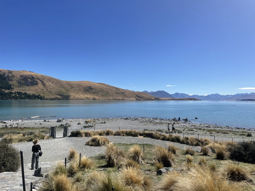 Lake Tekapo er fantastisk. Det er et af de smukkeste steder vi har været. Søens farve, bjergene omkring – og så på en fantastisk sommerdag næsten uden en vind. Hvem kan ønske sig mere. Vi har samlet et par indtryk.