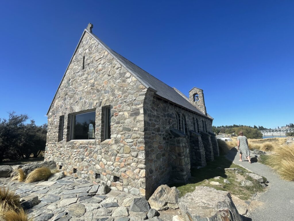 På kanten af søen ligger det lille kapel Den gode hyrde, som er usandsynligt smukt placeret. Bygget i 1937 af lokale. Fra kirkerummet kigger man ud over søen, der er alterbilledet. Intet overgår Guds eget skaberværk. Desværre var kirken ikke åben, så I må nøjes med at se den udefra, og så det billede af interiøret, der kunne tages. Men ingen tvivl om, at rammerne her er fantastiske.