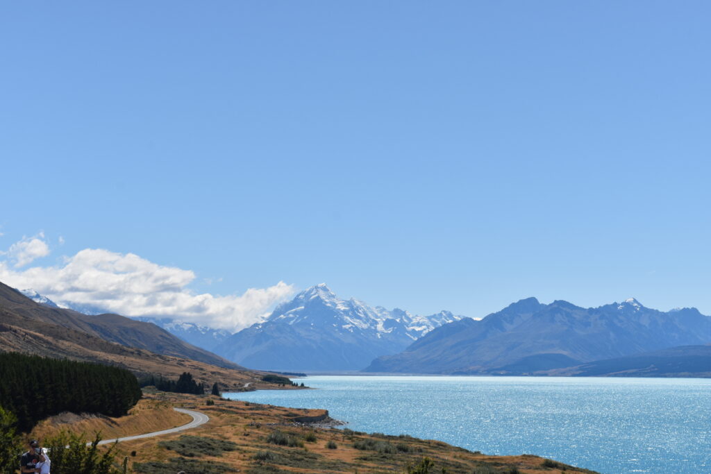 Lake Pukaki er noget større. Den er den største af de tre søer, der ligger i dette område og dækker over 178 kvadratkilometer areal. Samtidig er den omgivet af bjerge og har det mest azurblå vand, man kan tænke sig. Når man kører op langs søen har man Mount Cooks snedækkede tinde i baggrunden. Bjerget er med sine 3.764 meter det højeste bjerg i NZ. Bjergkæden, som den ligger i, har man kaldt De sydlige Alper. Det passer meget godt med udseendet. Billederne yder på ingen måde virkeligheden retfærdighed. Det skal ses!
