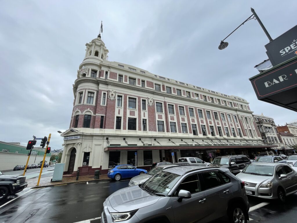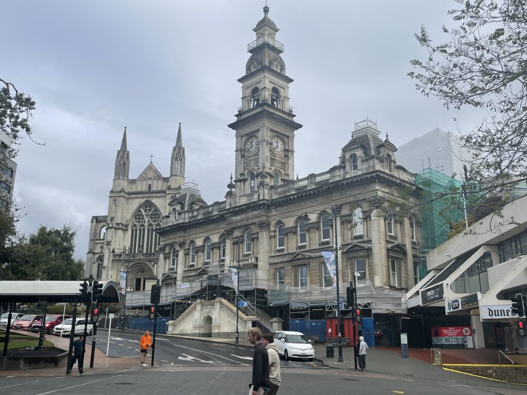 Vi startede dagen med at udforske Dunedin. Det er NZ’s ældste by, grundlagt i 1848 af skotske bosættere. Navnet betyder Edinburgh på gælisk. Et guldfund i 1860 gjorde at stedet tiltrak sig mange tilflyttere. Man kan fortsat se den skotske indflydelse i byen. Både på de gamle bygninger, der fortsat står, men også i forretningslivet, hvor det er muligt at købe bl.a. kilte, og en masse uldtøj. Det hænger naturligvis sammen med, at NZ har ekstremt mange får.