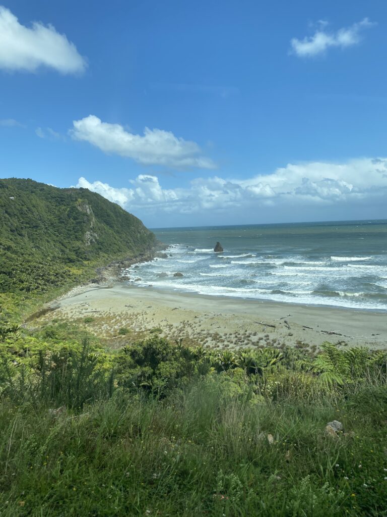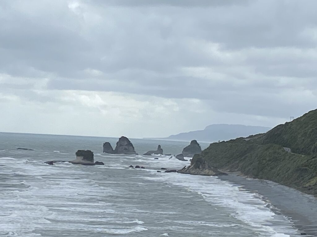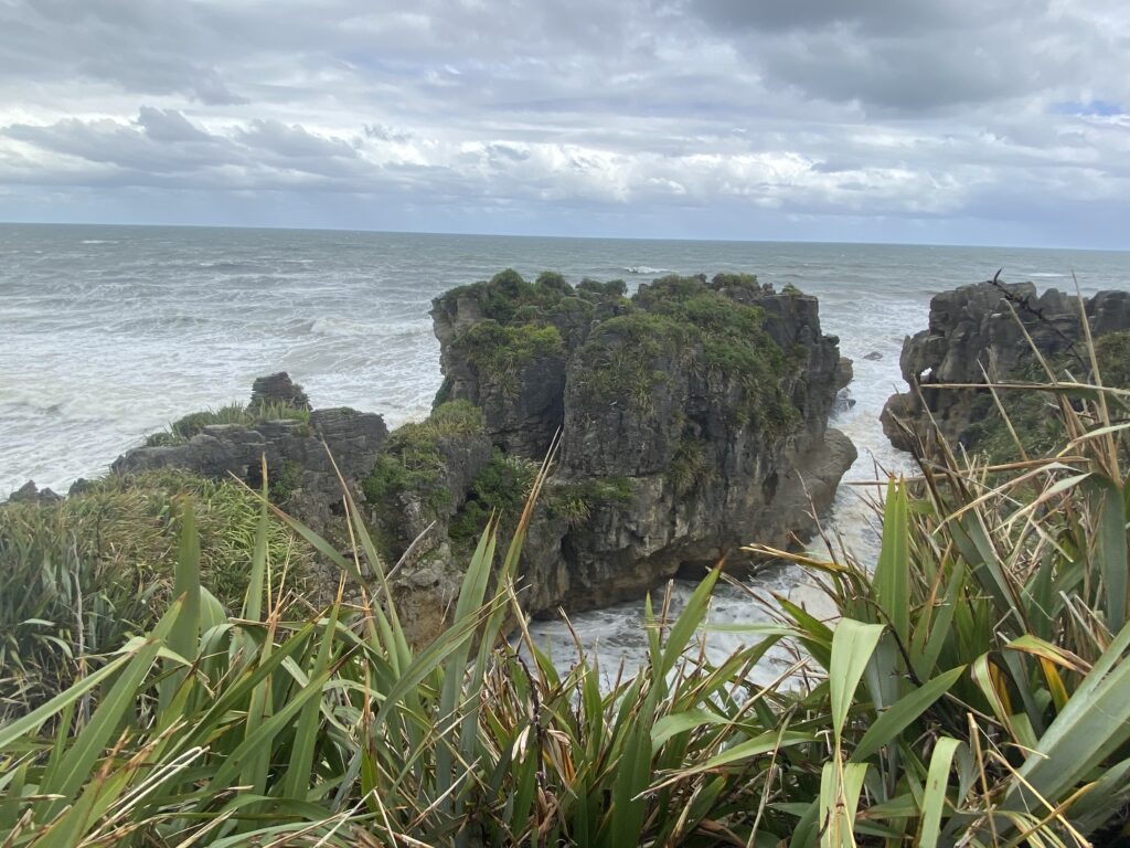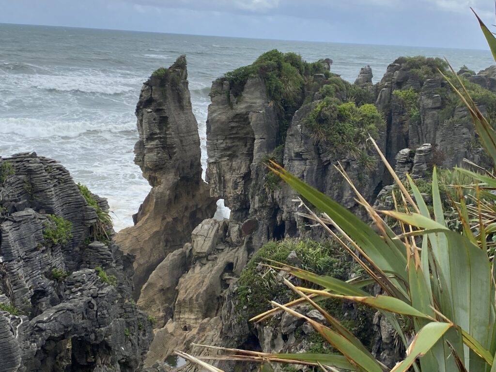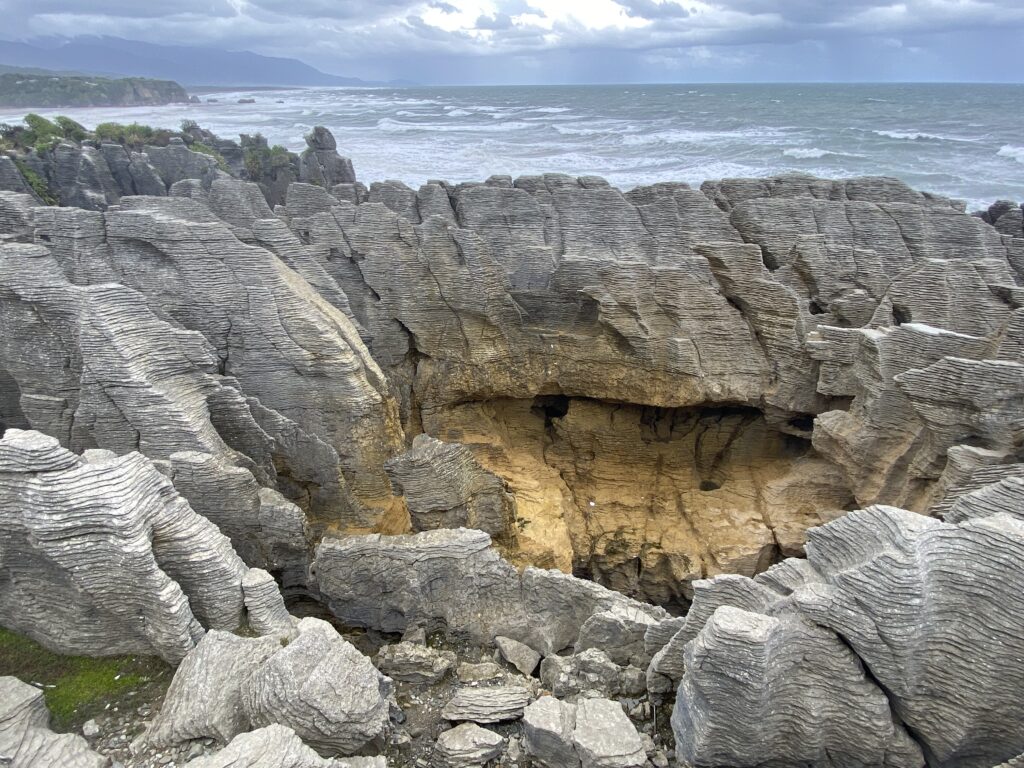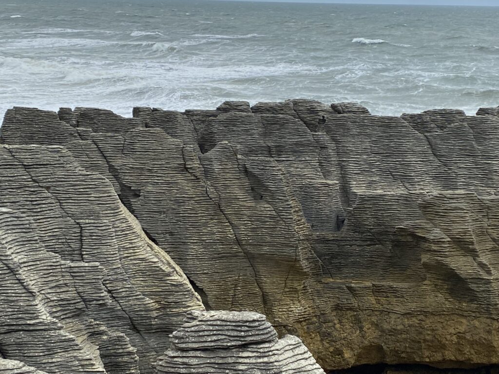 Den store seværdighed på turen var de såkaldte pandekageklipper og blowholes ved Punakaiki, cirka halvvejs oppe ad ruten. Pandekageklipperne er sandstensklipper, hvor vind og vejr har slidt dem på en sådan måde, at de fremstår som klare lag på lag. Det er både smukt og seværdigt. Der er lavet et besøgscenter her med en fin parkeringsplads, og de var i gang med at udvide faciliteterne, så der skal man endelig gøre holdt, hvis man er på de kanter. Der er også en fin gangsti til klipperne og gode afskærmninger, så man trygt kan bevæge sig rundt.