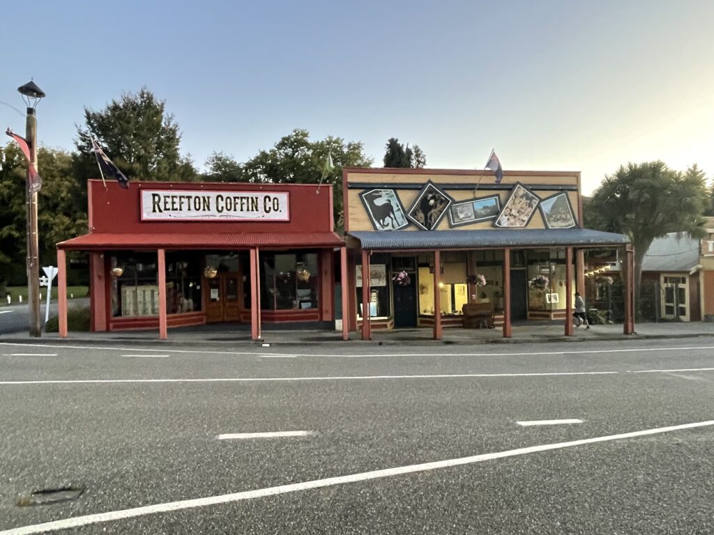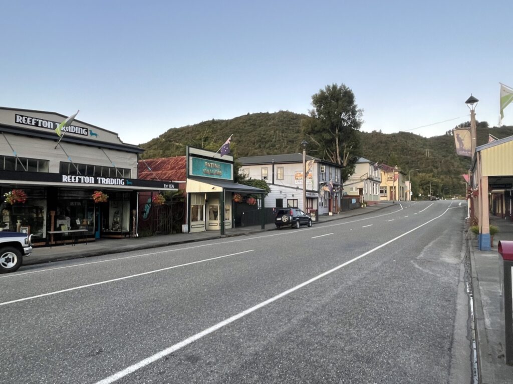 Reefton er en gammel mineby, grundlagt i 1870. Der har været gravet efter guld og kvarts. Det sidste i en lang periode. Byen har rigtig mange gamle ejendomme, og de fremstår i dag som en samlet kulisse. Den er rigtig hyggelig.