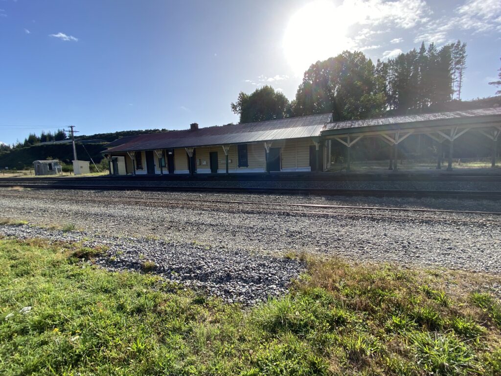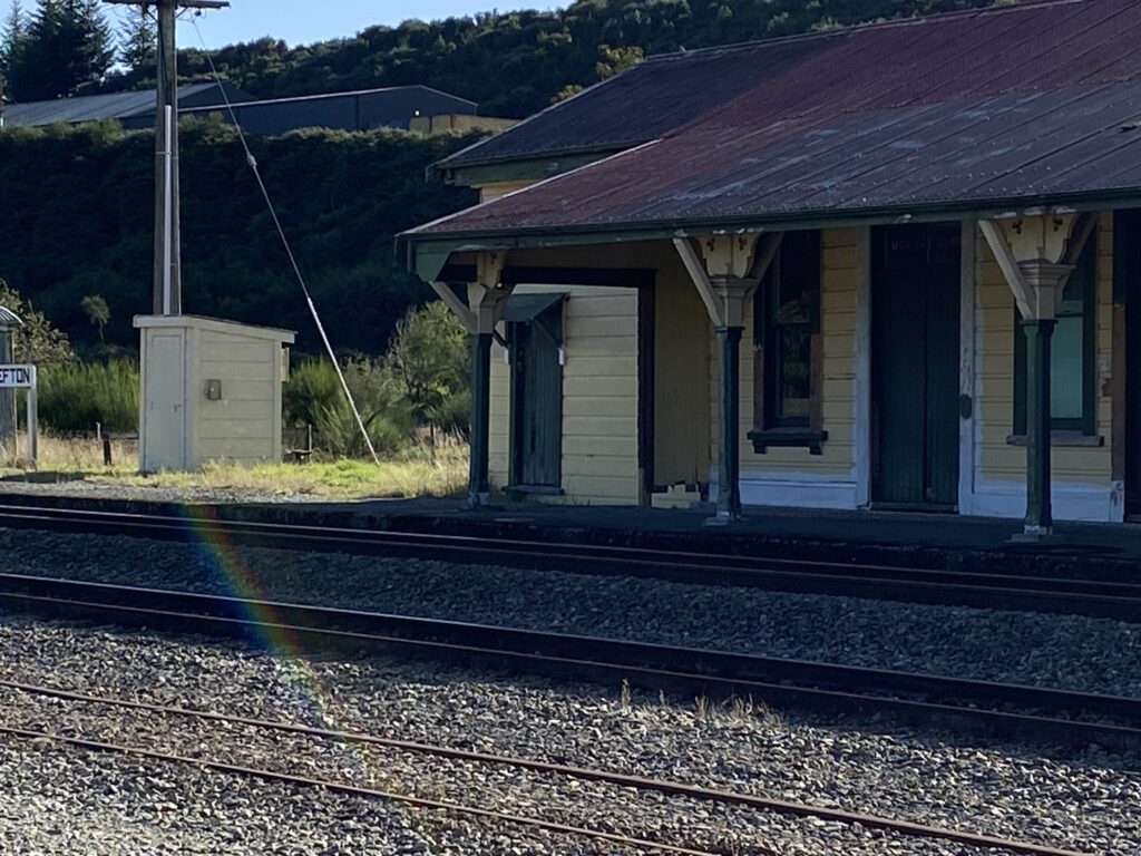Da vi var klar til afgang startede vi med at køre ned til byens butikker. Min halsbetændelse ville have godt af, at finde et halstørklæde. Så det ledte vi efter. Dog uden held her i Reefton. Så vi tog i stedet ud til den gamle jernbanestation, der må stå som den er opført. Den er i hvert fald som taget ud af en western, hvor togbanen er anlagt i 1870’erne. Imponerende, synes jeg. Birgit var ikke helt forstående over for min begejstring. Men vi er begge enige i, at byen i det hele taget er en oplagt kulisse til en film.