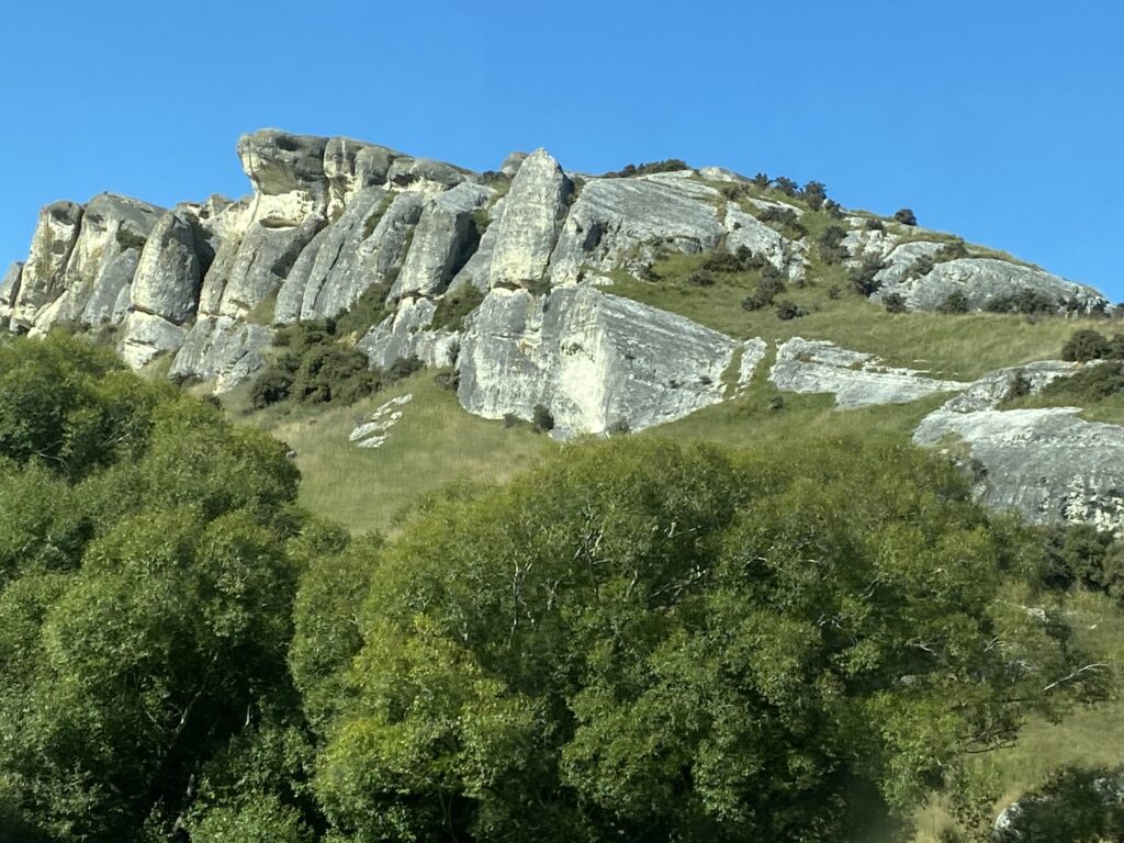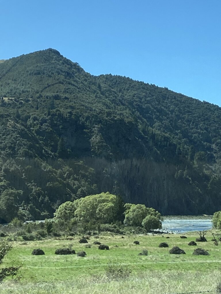 Selve Hanmer Springs var hyggelig, men der var ikke rigtig noget at komme efter. Vi overvejede ellers at sløjfe vores egen frokost til fordel for noget let et sted. Men det begreb havde ikke fundet vej til byen. Og den eneste café, der reklamerede med varme sandwiches var gået ud for skinke: Men vi kunne da få en med tomat og ost….. Vi valgte vores eget frokostbord, som vi indtog på en naturplads længere nede ad vejen. Vi fandt dog en butik, der handlede med uldvarer, så her fik jeg købt et halstørklæde, som nu varmer om min hals.
