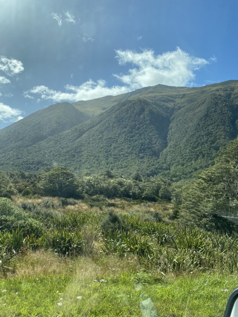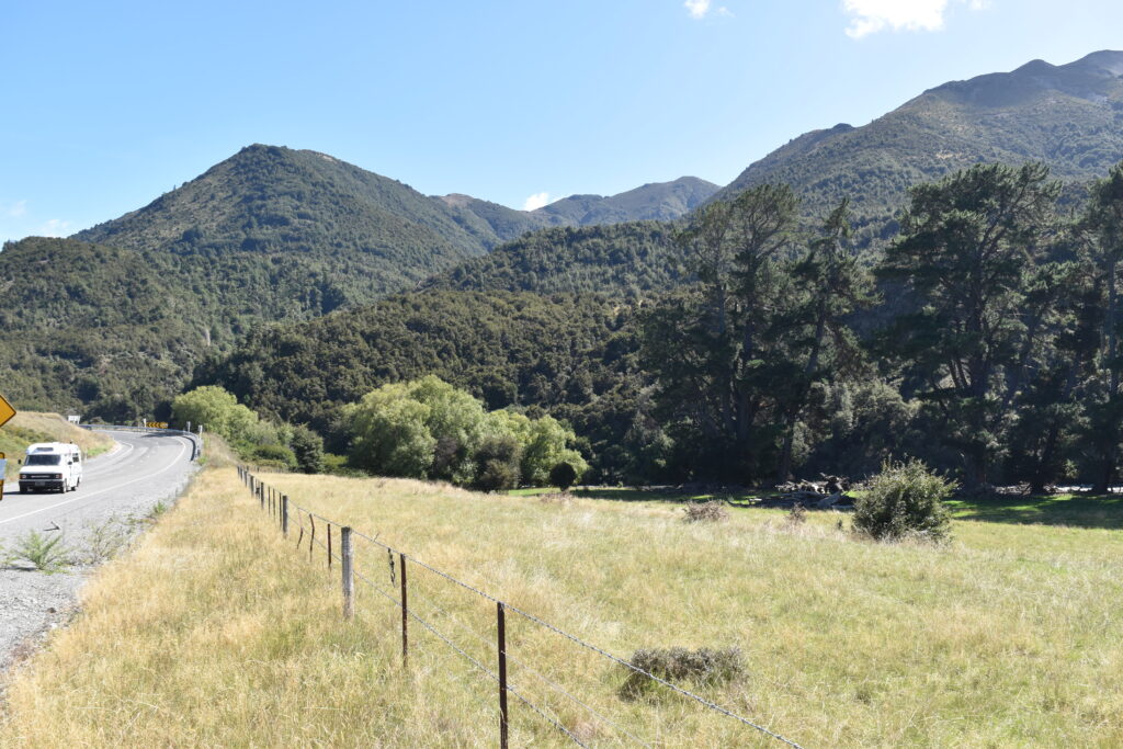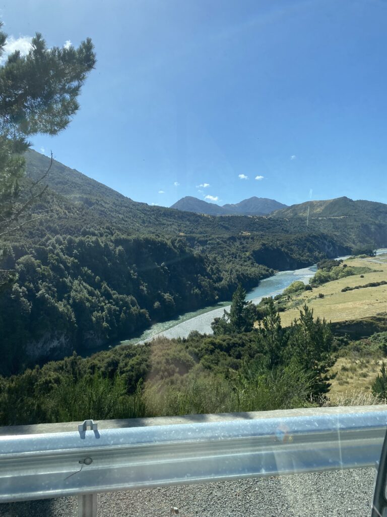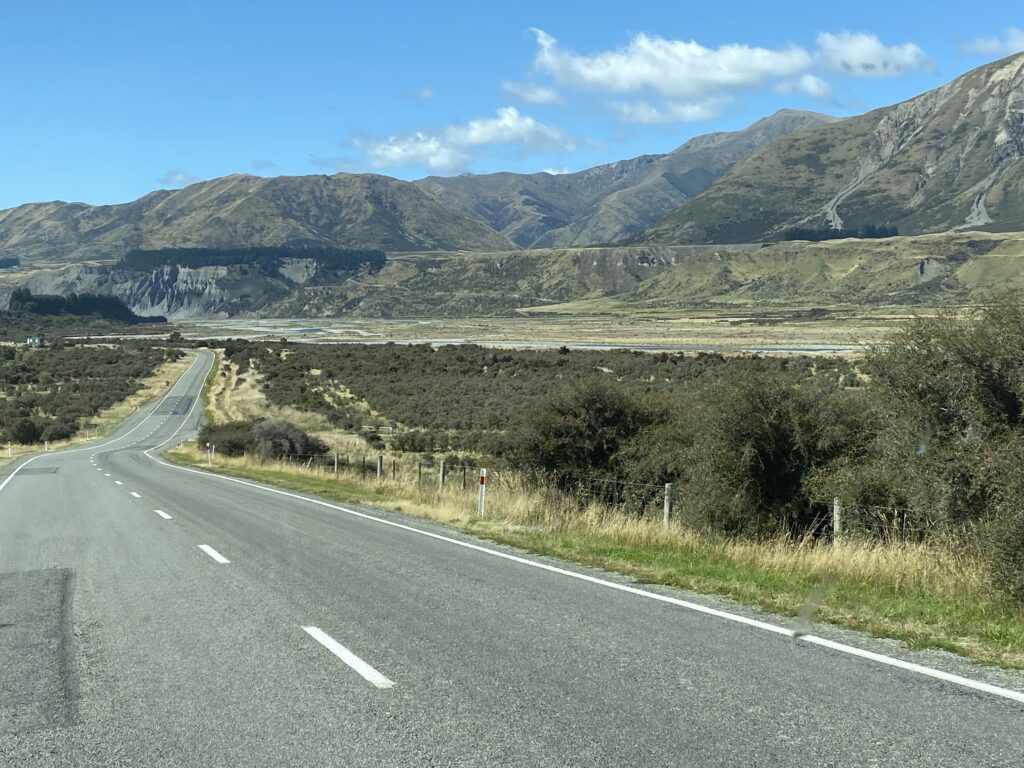 Turen til Christchurch var på 248 km, og sat til mere end 3 timer. Det realistiske er nok, at den for os tog 4,5 timer plus pauser. Der er 3 etaper, der adskiller sig fra hinanden. Den første del frem til byen Springs Junction. Det er en rigtig tur igennem bjergene, langs en større elv. Den næste del er fra Springs Junction over Lewis Passet og frem til Hanmer Springs. Den var helt fantastisk flot og afvekslende. Sidste del kører man til Christchurch igennem lavlandet og med lange lige stræk. Den er ikke så smuk og inspirerende, som de to andre.