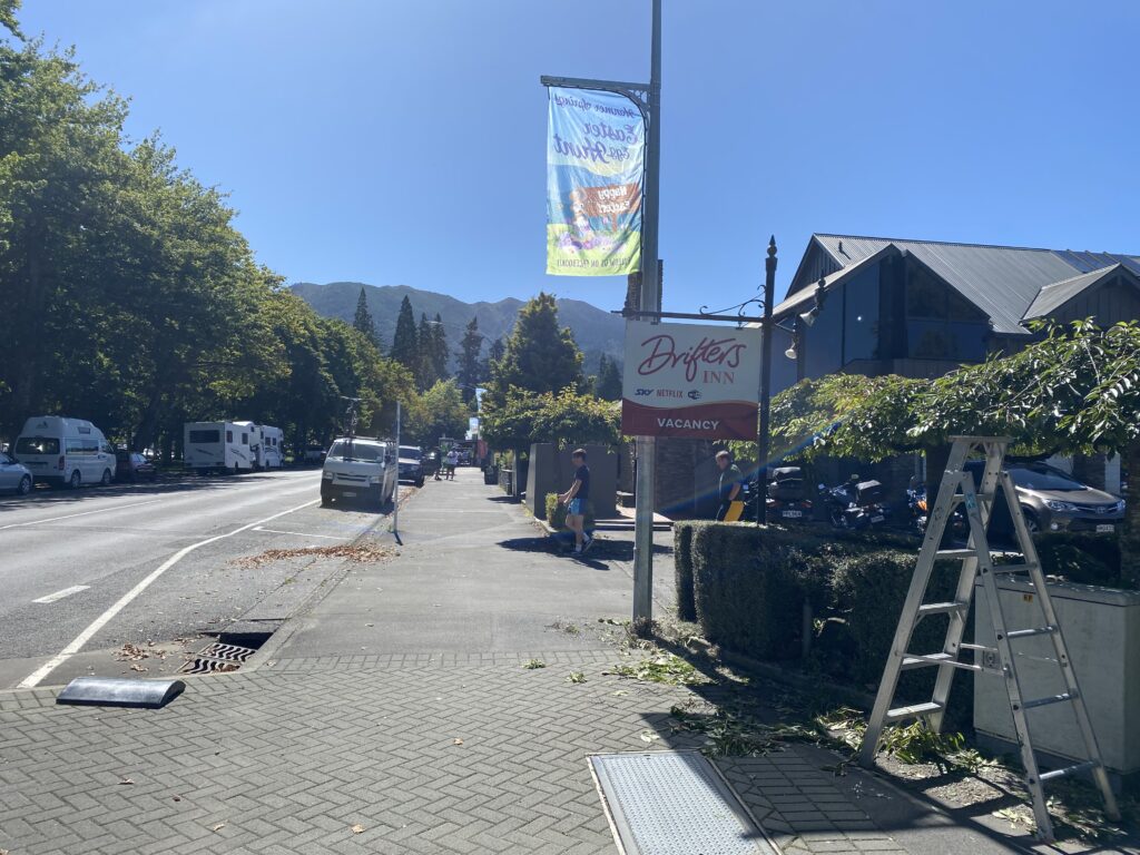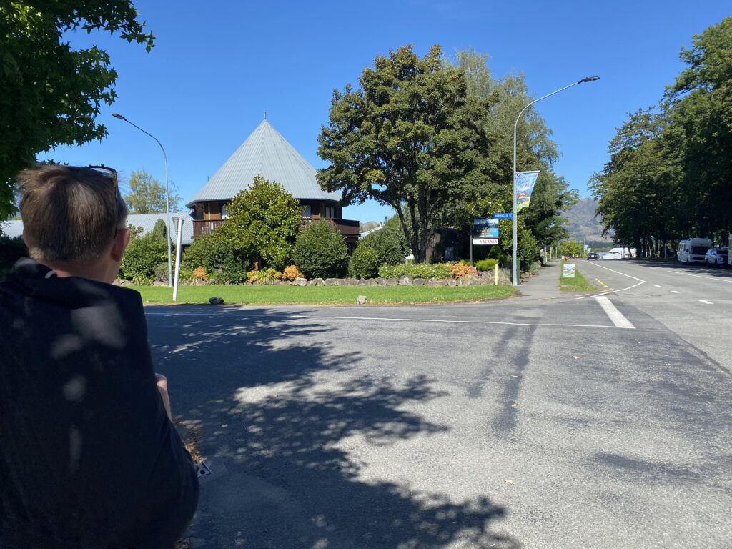 Vi er i den del af landet, hvor der er fundet varme kilder. Ligesom på Island og i Japan. Så der har man lavet hoteller, hvor man for en pæn sum kan få et bad med varme fra kilden. Byen Hanmer Springs, som vi tog ind til, er et sådant sted. Her fandt man i 1859 en varm sø, og det har så dannet baggrund for byens status som kurby. Allerede fra 1883 blev byen brugt som tilbud for sårede soldater. Og man lavede i 1914 et sanatorie (som brændte og et nyt blev opført), som man brugte til behandling af sårede fra 1. Verdenskrig.