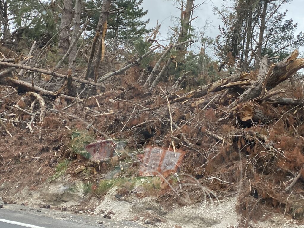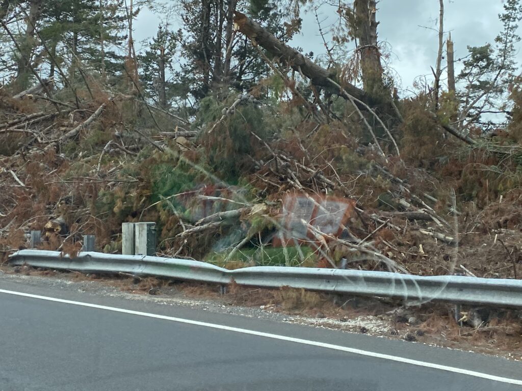 Her i området har vi ellers set flere af de skader, de har haft i forbindelse med cyklonen Gabrielle. Mængderne af vand har skabt mange jordskred og ødelagte veje. Men vi har også i dag igen set områder, hvor fyrretræerne er knækkede eller væltede i den hårde storm. Der ryddes op på fuld kraft i skovene, men der ser virkelig ud til at være væltet mange træer. Det er svært at vise på billeder, men man er ikke i tvivl om, at det er store kræfter, der har været på spil.